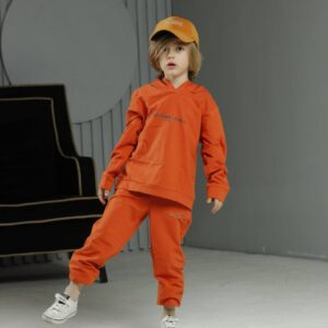 • ست هودی شلوار فونت ساده رنگ نارنجیD18
