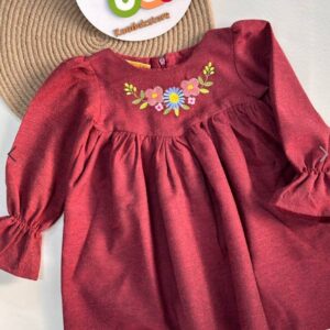 • پیراهن گلدوزی رنگ زرشکی کد P03