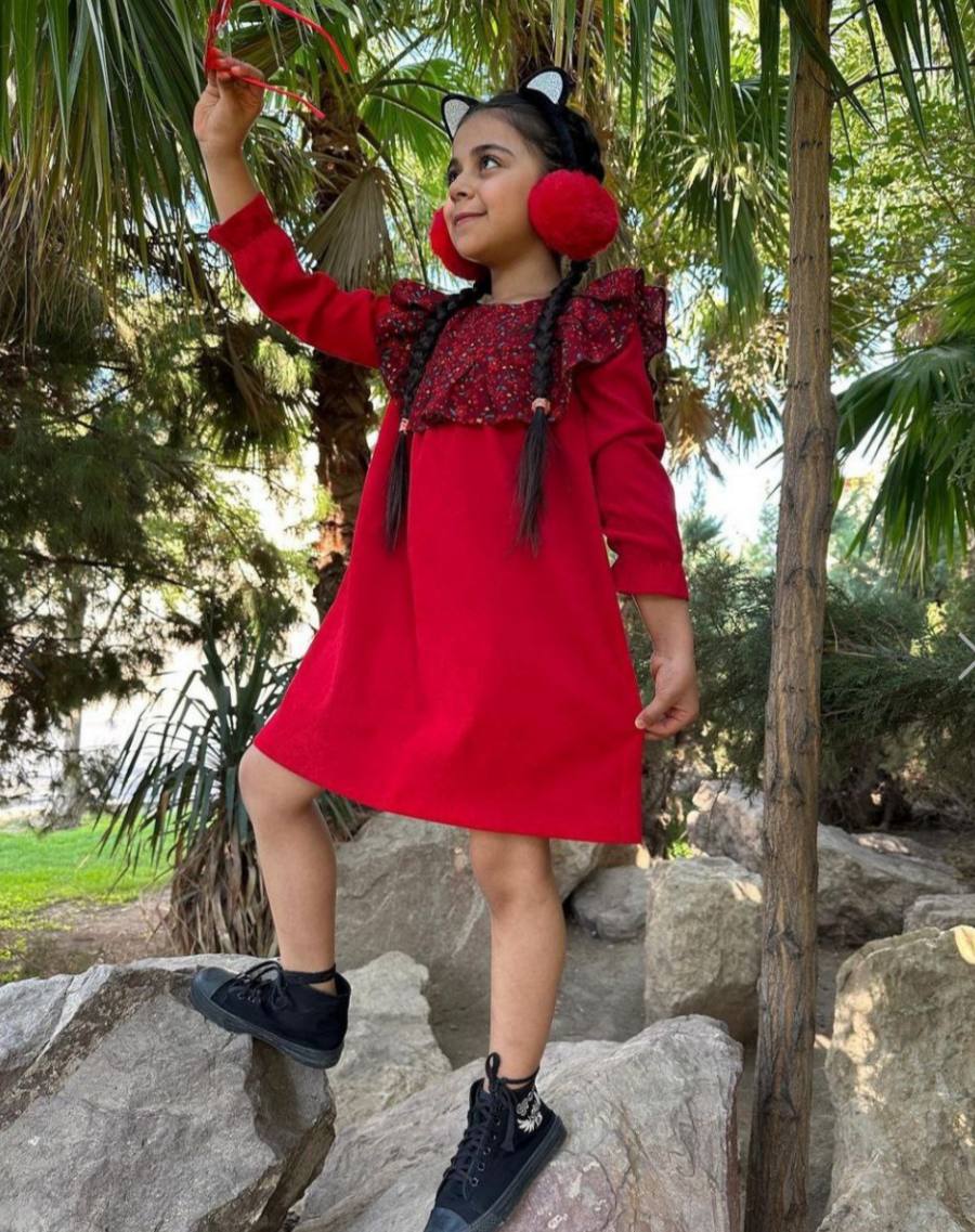 پیراهن گلدار جنس مخمل کبریتی رنگ قرمز کد P02| مشخصات دیگر |